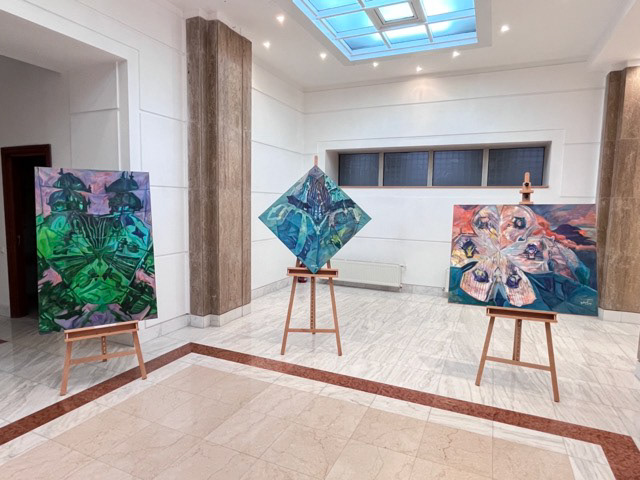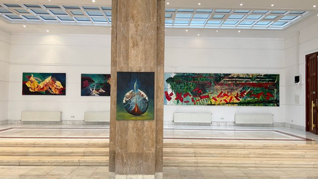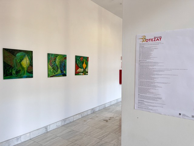 "Abstrageri Cosmos" reunește o selecție a recentelor proiecte expoziționale ale lui Dragoș Botezat, în ideea esențializării datelor metafizice, care transpar în mesajele acestuia, generând o punte între nevoia artistului de a se raporta la trecut, la amintirea părinților, și felul cum memoria lor este receptată în pictura sa. Privită din acest unghi, abordarea vizuală se concentrează pe aparența unei alte prezențe a sufletului de după dispariția ființei, tratată în termenii vizuali ai unui Paradis imaginat. Pictorul își plasează în context rememorarea celor dragi, cărora le simte energia venită dinspre Câmpiile Elizee, reconstruite pentru fericirea lor infinită și iluzorie. Crearea universurilor concentrice ale existenței prin sugestii imagistice, prin ciclicitatea dintre lumină și întuneric, prin prezența spiritului artistului care își restaurează memoria ca o continuitate a celorlalte două ființe, integrate cunoașterii absolute, al căror ADN își află continuitatea în lucrări receptând închisuri și deschisuri, contraste și interogații. Demersul vizual se află în simbioza artistului cu trecutul recent, afectiv și irecuperabil, pe care îl poartă cu sine, extrapolându-l prin pictură. Compozițiile nu au structuri inactive, ci doar componente tensionale, care conlucrează la vizibilitatea parametrilor plastici prin desen și culoare, prin date care transpar din subconștient, fiind concretizate în această etapă de creație. Acum apar pentru prima dată două siluete a căror radiație cromatică se extinde surdinizat pe suprafața compozițiilor, semn că transcendența nu este chiar atât de imperceptibilă. Personajele cu anatomie pierdută în efectele de culoare, ivindu-se ca niște duhuri dintr-o atmosferă tonală al cărei halou nu prezintă întreruperi de ritm, au continuitate cu planurile și materialitățile din jur. Aceste efigii sunt plasate într-un Cosmos interior, depozitar al intuiției și al spațiilor abisale, reverberate într-o energie, care învăluie simțurile artistului, problematizând raportul dintre viață și moarte, dintre tensiunile existenței, dintre palpabil și imaterial. Nostalgia după vremurile copilăriei, după chipurile și glasurile părinților activează ideea de dor, de sentimente și experiențe trăite alături de aceștia, reverberațiile venite dinspre origini, păstrând nealterată îngemănarea spiritului său cu ecoul unui cod genetic rematerializat abstract, prin substanța picturii și prin imagini încărcate de spiritualitate.
