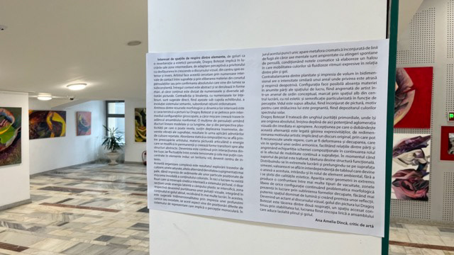 Interesat de spațiile de respiro dintre elemente, de goluri ca o reverberație a esteticii personale, Dragoș Botezat implică în lucrările sale zone intermediare, de adaptare perceptivă a privitorului cu desfășurarea în crescendo a discursului vizual, din centru spre exterior și invers. Artistul face această cercetare prin numeroase intervale de contact între suprafețe și prin eliberarea materiei din corsetul pensulațiilor sau prin confirmare absolutului care vine din lumea sa subconștientă. Întregul context este abstract și se derulează în forme mari, al căror conținut este divizat de numeroasele și diversele adnotări picturale. Contradicția și bivalența, cu numeroasele lor înțelesuri, sunt sugerate direct, fiind așezate sub cupola echilibrului, a evoluției sistemului semantic, subordonat rațiunii ordonatoare. Antiteza dintre resursele morfologice și dinamica lor interioară este o caracteristică a picturii lui Dragoș Botezat și se petrece prin intermediul configurațiilor giroscopate, a căror mișcare creează trasee în adâncul ansamblului nonformal. O mulțime de pensulații urmând ducturi lineare modelate și ca lungime, dar și din perspectiva plasticității pe care o poate revela, susțin deplasarea însemnelor, devenite vibrații ale suprafeței, rezultate în urma aplicării adnotărilor de culoare repetate. Abordarea statică a compoziției nu se află printre preocupările artistului, materia picturală articulând o energie care se modifică în permanență și creează forme tranzitorii spre alte structuri abstracte. Devenirea este continuă prin interacțiunea dintre tușe, iar fluctuațiile între zonele tensionate și cele mai puțin concentrate în elemente induc un teritoriu vid, devenit centru de interes. Această organizare complexă este rezultatul explorării traseelor de culoare, unele saturate, altele alternând densitatea cu pigmentații mai pale, dând impresia de sedimente ale unor particule poziționate de mișcarea invizibilă a conținutului coloristic. În nici o lucrare nu există fisuri care să întrerupă cinetica interioară a sistemului pictural, ci doar secțiuni unde energia latentă a câmpului plastic se intensifică, zona respectivă devenind purtătoarea unor pulsații vizuale, integrând în conținutul ei golul abisal, recidivând în mai multe lucrări. În acestea, este sugerată tridimensionalitatea prin impresia unei profunzimi conice sau ovoidale, iar acest aspect vine din poziționări diferite ale sistemului de reprezentare care implică o percepție monoculară. În jurul acestui punct unic apare metafora cromatică înconjurată de linii de fugă ale căror axe mentale sunt amprentate cu atingeri spontane de pensulă, condiționând notele cromatice să elaboreze un halou în care mobilitatea culorilor să fluidizeze ritmuri expresive în relația dintre plin și gol. Contrabalansarea dintre planitate și impresia de volum în bidimensional are o intensitate similară unui areal unde privirea este atrasă și respinsă deopotrivă. Configurația face posibilă absența materiei în anumite părți ale spațiului de lucru, fiind angrenată de artist într-un arsenal de ordin conceptual, marcat prin spațiul alb din centrul lucrării, cu rol estetic și semnificație particularizată în funcție de percepție. Vidul este supus albului, fiind înconjurat de pictură, motiv pentru care strălucirea lui este pregnantă, fiind depozitarul culorilor spectrului solar. Dragoș Botezat îl tratează din unghiul purității primordiale, unde își are originea absolutul, liniștea deplină de aici potențând aglomerația vizuală din imediata ei apropiere. Accepțiunea pe care o dobândește această alternanță este legată găsirea expresivităților, de redimensionarea motivului artistic implicând un discurs original, prin care pot fi recunoscute unele repere, cum ar fi deformarea și decuparea, care vin în sprijinul unei ordini armonice, facilitând relațiile dintre părți și angrenând echipartiția schemei compoziționale în continuarea rolul ei în efectul de mobilitate continuă a suprafeței. În momentul când suportul de pictat este traforat, tăietura devine structură funcțională. Distribuindu-se în extremele lucrării și prelungindu-se pe suprafața simezei, valoarea ei se află în interdependență de tabloul care devine o anexă a acestuia, intrându-și în rolul de element ambiental, fără a i se știrbi din calitățile estetice. Apariția unor geometrii in extremis produce o confruntare între mai multe tipuri de vacuitate, zonele libere de orice configurație continuând problematica morfologică prezentă în lucrare prin sublinierea formelor decupate, făcând mai puternic spațiul dominat de lumină și creând premiza unor reflecții. Devenind un actant al discursului vizual, golul din pictura lui Dragoș Botezat este tăcerea dintre două respirații, un spațiu accesat continuu prin stabilitatea lui, lucrarea fiind sincopa lirică a ansamblului care aduce laolaltă plinul și golul.